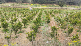 地块描述:地块总面积24亩,主要种植的是耙耙柑和爱媛,已挂果2年。土壤为页岩风化的紫色土,其中15亩为之前的平坦水浇地,地块内有一条小溪,常年有水,水源较好,10亩为山边上的二台缓坡地。